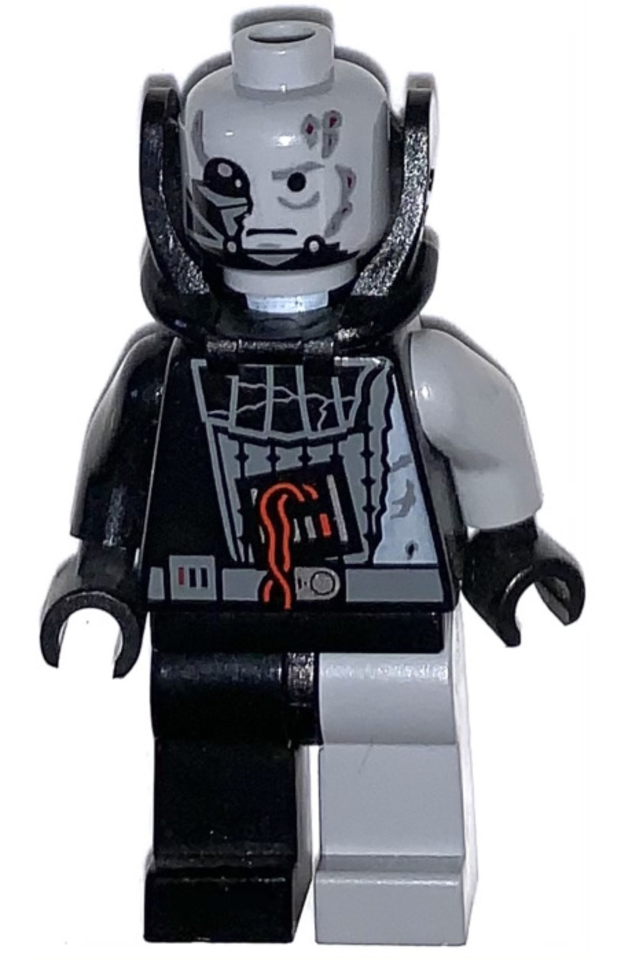 The 2014 redesign has the same cape and helmet that the previous redesign used from 2010. His head has a totally new printing, showing a tan color and his facial expression has completely changed. He now also has printings on his legs. This Minifigure has only appeared in the set 75055 Imperial Star Destroyer.