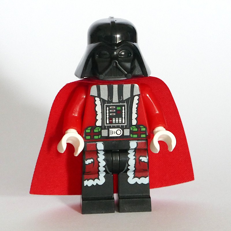 The Santa Darth Vader, introduced and only featured in the 2014 version of the 75056 LEGO Star Wars Advent Calendar, features new prints on the torso, hips and legs. Underneath the Santa-costume-printing, the print of the 2014 redesign can be seen. Mask and head are also equivalent to the 2014 version of the figure. Additionally, this design sports a red cape instead of a black one.