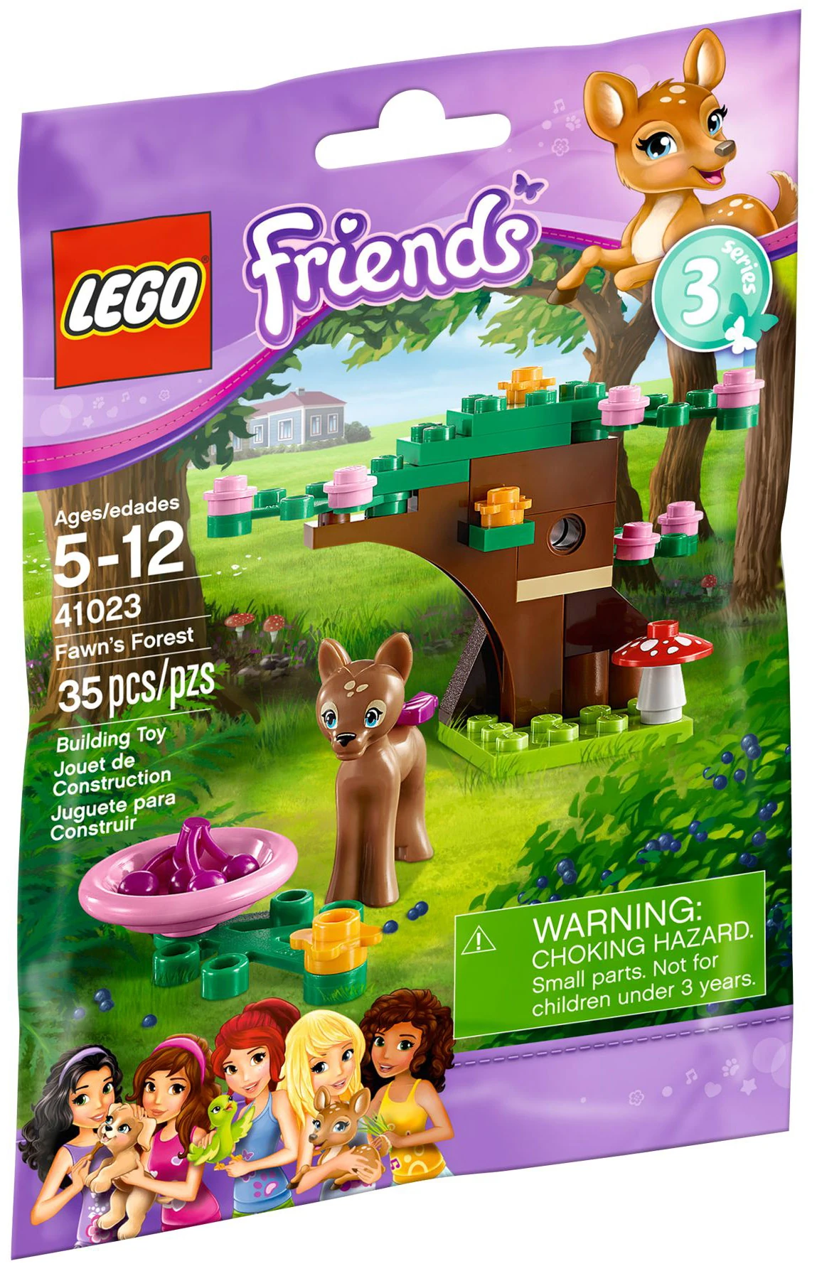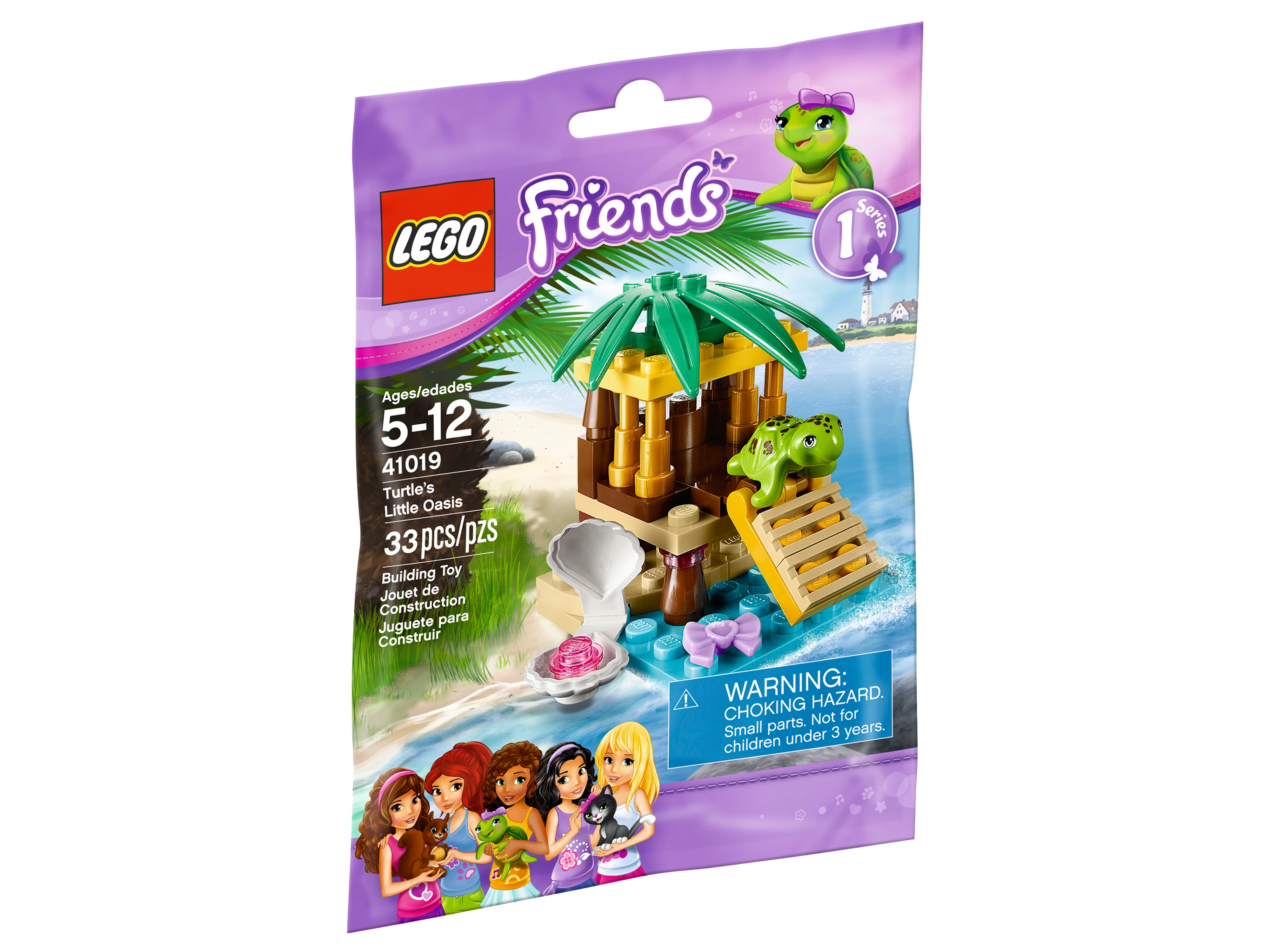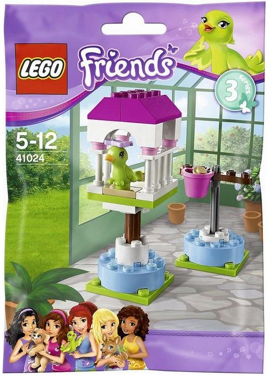 Friends has also introduced many new animal moulds including redesigned horses and a foal, rabbits, parrots, dolphins, butterflies and bugs, also cats and dogs in different poses. There are also some entirely new moulds, such as a hedgehog, a squirrel and a turtle. Most of these figures appear in different colour variants. The Friends Animals subtheme released in 2013 was entirely dedicated to the Heartlake City fauna. These small sets are sold in polybags, with three bags per series.